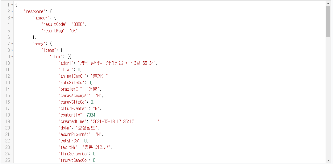 이번에는 JSON 형식으로 오픈 API를 요청하여 데이터를 확인해보자.