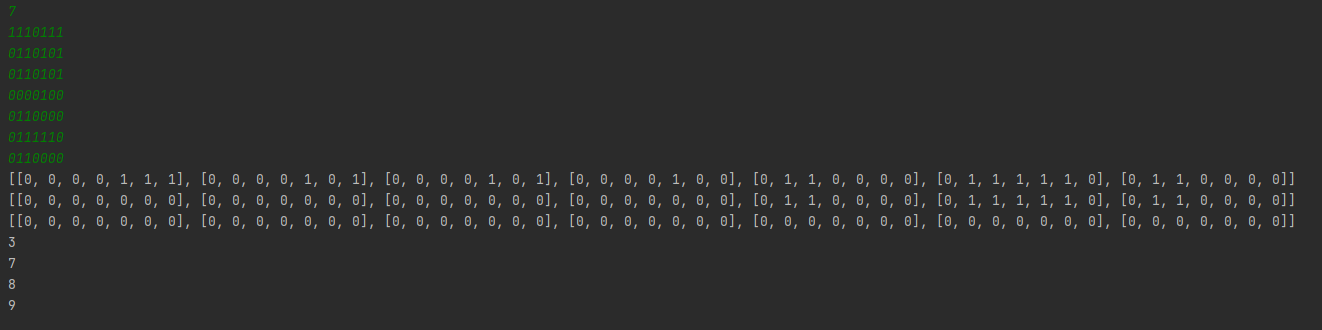 위 코드에서 if dfs(i, j) == True: 밑에 print(graph)를 작성하면 해당 그래프의 방문처리를 출력 화면과 같이 확인할 수 있다.
