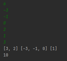 위 다른 예시의 출력화면을 보게 되면 양수 리스트인 po 리스트에 양수인 3과 2가 내림차순으로 정렬되어 있는 것을 확인할 수 있고 음수, 0 리스트인 ne 리스트에 음수 -3과 -1, 0이 오름차순으로 정렬되어 있는 것을 확인할 수 있고 1 리스트인 one 리스트에 1이 있는 것을 확인할 수 있다. 따라서 양수 리스트를 묶어주면 6이 되고 음수, 0 리스트는 -3, -1, 0이기 때문에 -3과 -1을 묶어주고 0은 그냥 더해주고 one 리스트는 1을 결과값에 더해주면 된다. 따라서 식은 0+(-3*-1)+1+(2*3) = 10 이 된다.