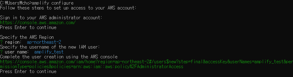 ? user name: # Amplify IAM 사용자의 사용자 이름