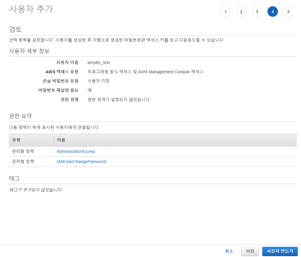 다음으로 Amplify를 위한 사용자를 하나 만든다.